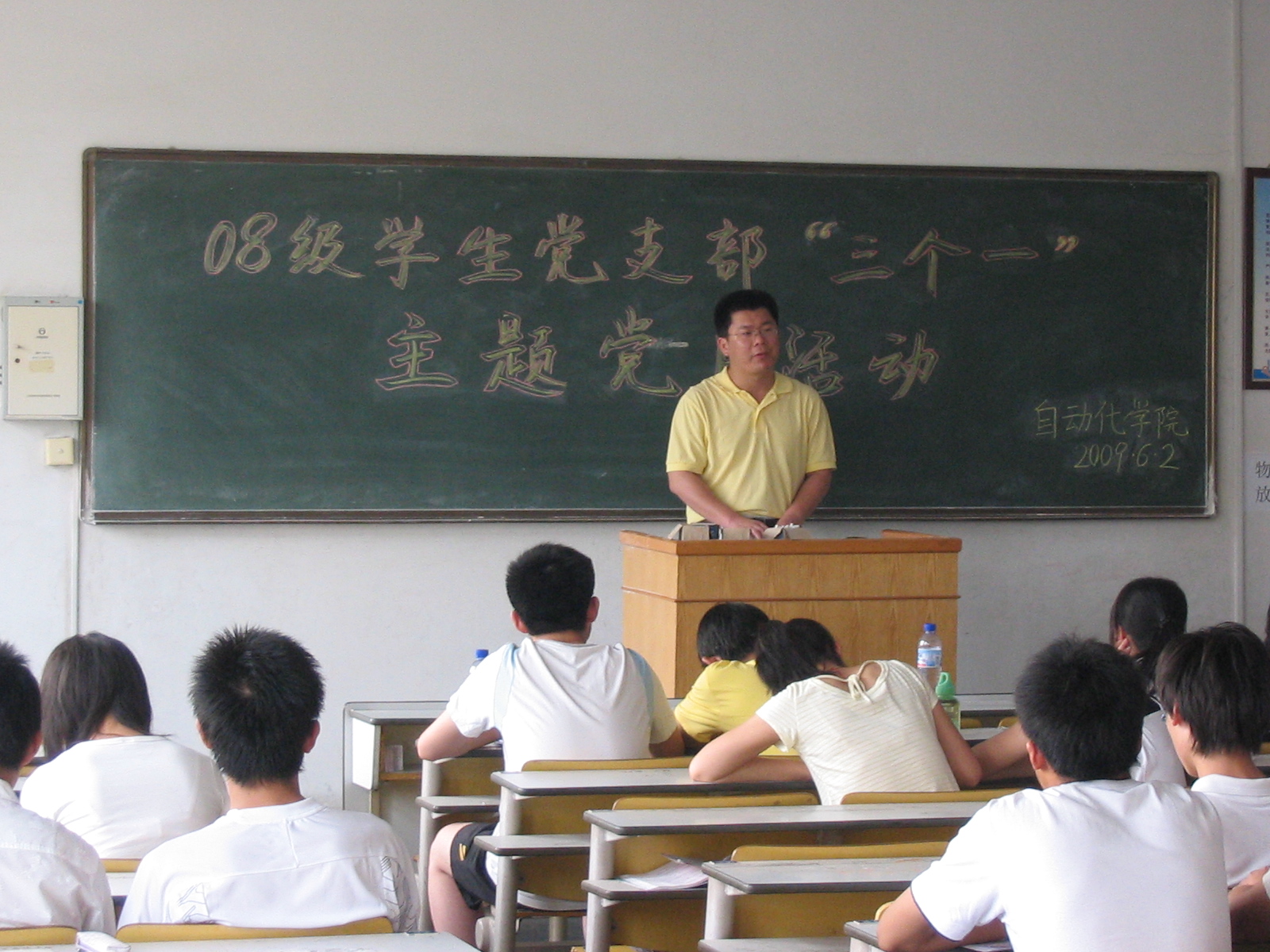 08级学生党支部“三个一”主题党日活动在四方校区一教307举行。党支部书记刘名森老师,支部成员曹湛江老师,各班学生党员出席会议。08级入党积极分子、参加帮扶活动的同学参加会议。会议由刘名森老师主持并发表讲话。他介绍了“三个一”活动的具体内容和要求, 宣读并解释了《大象传媒