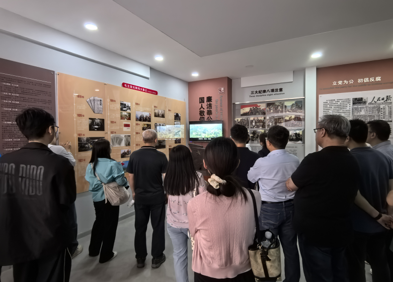 在毛公山清风馆,党员们于一楼学习毛泽东同志奋斗历程相关珍贵资料,重温《中国共产党廉洁自律准则》,感悟革命先辈无私奉献精神;二楼了解东汉不其县令童恢廉政事迹,从艺术化的展陈中体会廉政文化的历史传承。
