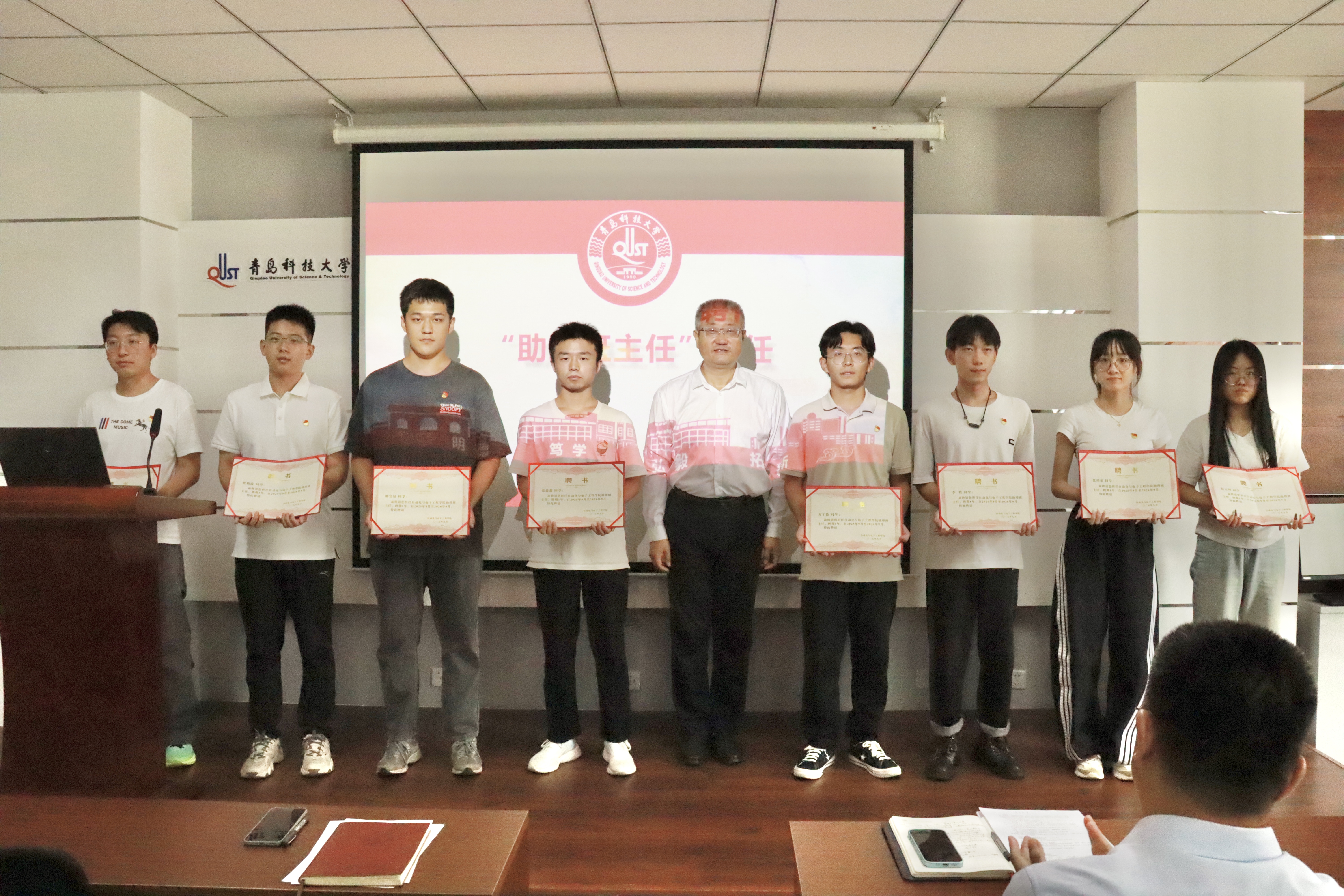 9 月 16 日,自动化与电子工程学院党委在学院楼410会议室召开学生党员大会暨“AI家驿站”功能型党支部新学期工作部署会。学院党委书记郭永、副书记兼副院长刘名森,全体学生党支部书记及学生党员120余人参会。会议由学院学院团委副书记兼学工办副主任张郁浩主持。