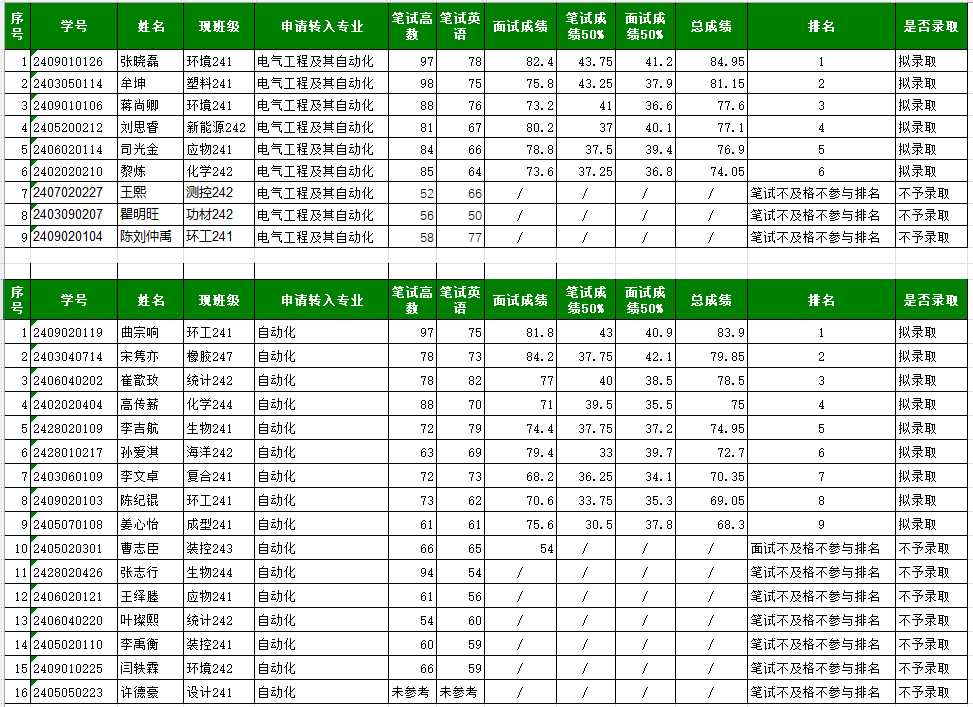 2024级本科学生转专业拟录取公示,公示时间2025年2月28日-3月3日,有问题请联系大象传媒 教学办88959930。