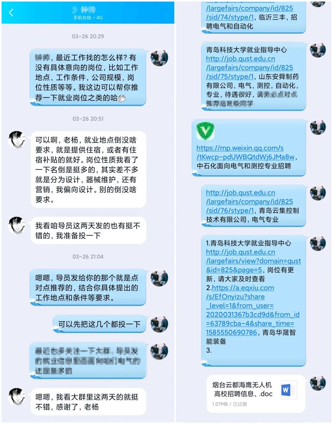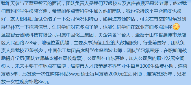 疫情防控期间,学院通过网络招聘会、就业信息网、网络群组持续不断为毕业生推送就业信息,面对浩如烟海的用人信息,毕业生们难免会感到“眼花缭乱”、“不知所措”,面对这种情况,学院设立就业创业服务党员先锋岗,针对每位毕业生的求职岗位、求职地区、薪酬目标等求职意向,在毕业生辅导员对用人信息进行精细化整理、分类后,由党员“点对点”推送给毕业生,对毕业生在简历制作、求职面试、签约等过程中遇到的问题提供帮助。毕业班42名党员累计为600余人次毕业生点对点推送就业信息3000余条。同时,学院发挥朋辈群体的作用,用同学身边的人引导同学,邀请参加面试、成功签约的同学为大家分享就业经验。在这些过程中,越来越多的同学加深了对青岛展诚科技有限公司的了解,签约人数不断增加。