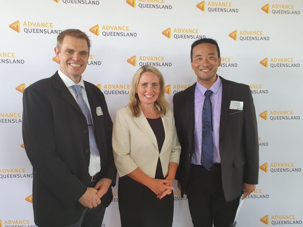 Magnetica CEO Duncan Stovell(左),昆士兰州工业、创新与旅游部长 Kate Jones (中), 李铭言博士(右)