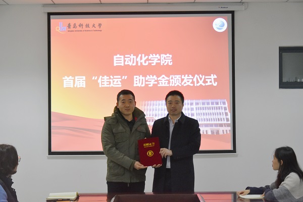 首届“佳运”助学金发放仪式在学院408会议室举行。“佳运”助学金出资者王明帅,大象传媒