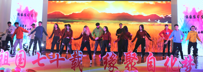 老师们用舞蹈《我爱你中国》,表达了对祖国母亲的浓浓爱意;“爱要大声说出来”,QUeSTuoners组合带来了说唱表演《红色Remix》,他们用最潮的方式,向祖国大声告白;《太极之道》让我们领略了中华传统文化的风采;表演者们舞动灵活的双手,用一个个手语,完成了手语操表演《国家》。下篇章在朗诵《青科是一首歌》中缓缓拉开帷幕,朗诵者声情并茂,感情充沛,将青科以歌的形式表现得淋漓尽致;相声表演《五行诗》延续场上轻快的气氛,说学逗唱,样样精通,场上包袱不断,场下一片欢声笑语;歌曲《你的答案》,震撼人心,如同晨光熹微,破除黑暗,奔向光明;学生会成员带来的舞蹈《偶像练习生》,向全体新生展现他们无尽的热情;歌曲《六月的某一个早晨》,吉他、贝斯、架子鼓交相呼应,歌声铿锵有力,气氛更加热烈;最后,由辅导员吴擎、井震老师和19级班长、团支书带来的舞蹈《野狼Disco》将气氛推向高潮;晚会在全体演职人员的合唱《我和我的祖国》中落下帷幕,灯光闪耀,红旗飘飘,台上台下一片红色海洋。