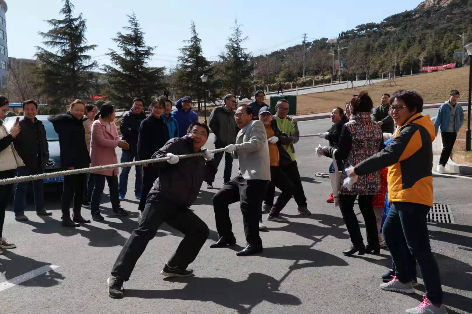 楼大厅前举行了“攻坚突破,庆魅力三八节”教师拔河比赛。