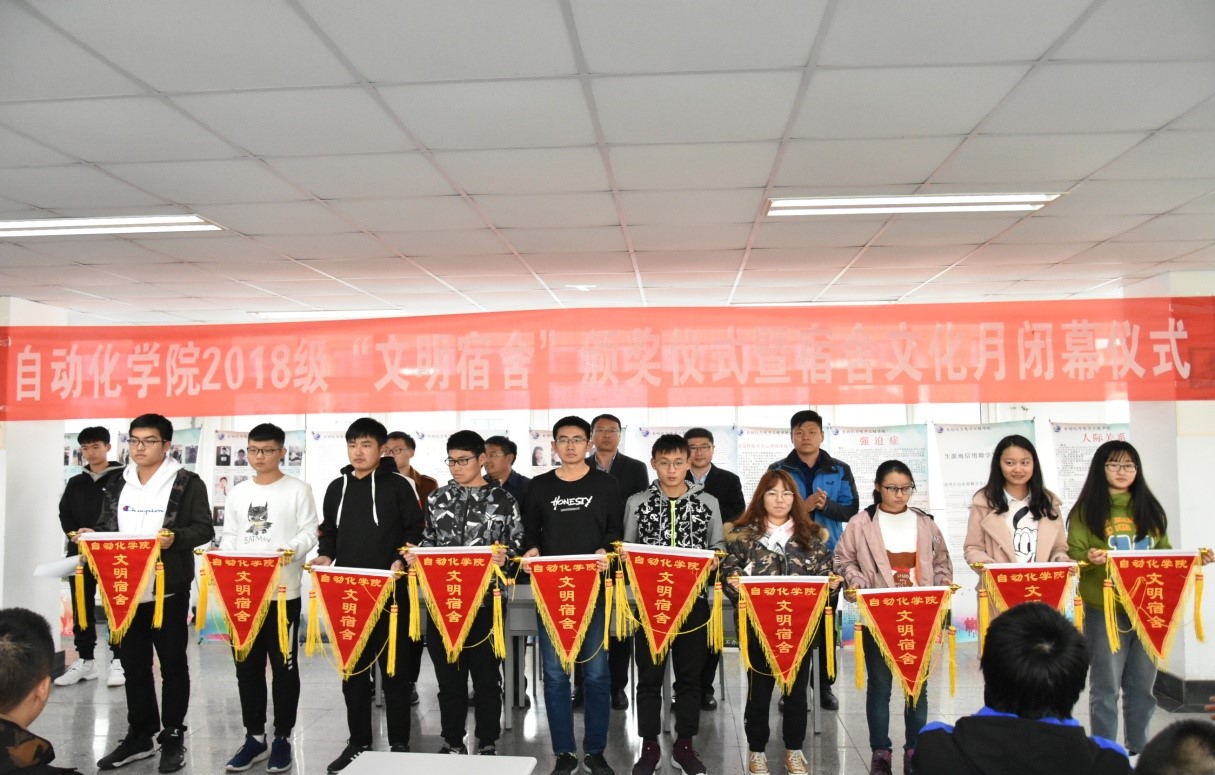 通过为期四周的评比选拔,20个文明宿舍和“十佳舍长”脱颖而出,贺炜、马寒等与会嘉宾为获奖人员颁发锦旗和奖状。