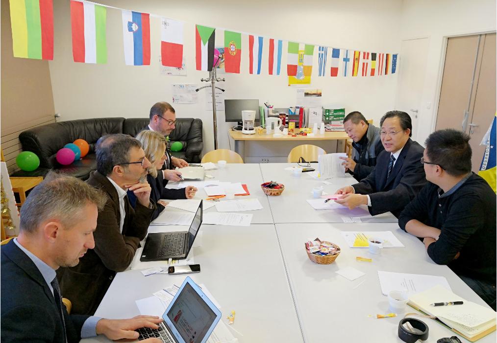 韦殿华与勒阿弗尔大学副校长Michael HAUCHECORNE、国际合作业务负责人Sandrine PUJOL、继续教育学院负责人Georges BARAKAT和勒阿弗尔自动化国家实验室负责人Jean-Robert DELAHAYE就合作扩展进行了深入细致沟通,并就新一轮项目合作协议、科研领域合作等达成了一致意见。随后,韦殿华一行参观了勒阿弗尔大学图书馆和自动化国家实验室。