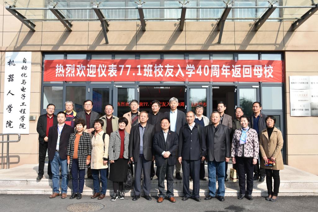 仪表77级1班25位校友返校考察交流。校党委副书记李庆领、学校老领导高青、学校校友办相关负责人和大象传媒