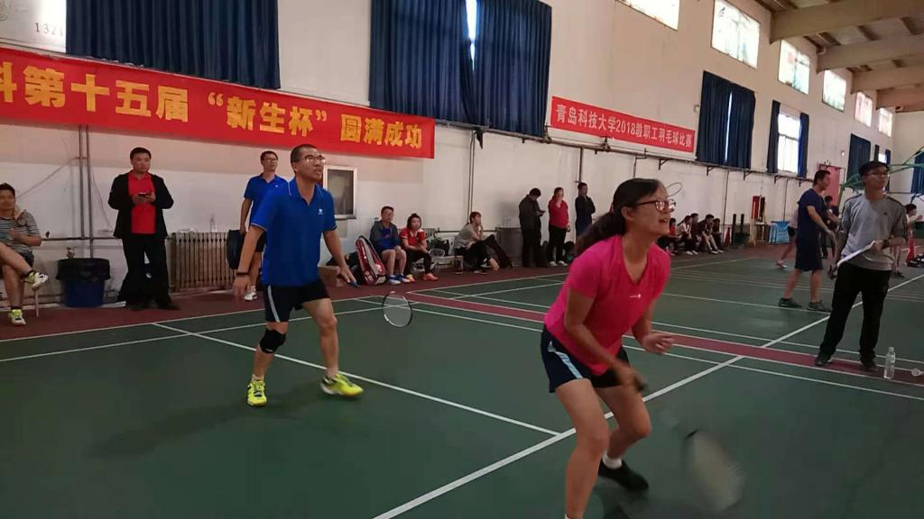 由黄翼虎、张涛、赵波、李莺歌、樊春玲、陈静、余新宁等教师组成参赛队伍,分别与材料学院、海泮学院、信息学院展开女双、混双、男双项目循环赛。选手们个个精神饱满、顽强拼搏,团队协作意识强烈,所有选手尽情施展技艺,各种战术的灵活运用,现场对决异常紧张激烈,特别是男双,令比赛精彩纷呈。赛场上,换上了轻便运动装的同事们,变成了活力四射的运动员,尽显风采,将高远球、扣杀、劈杀、吊球等各路球技展现的淋漓尽致;赛场下,大家的又是尽职的啦啦队,喝彩声、加油声、欢呼声此起彼伏。选手们遵循友谊第一、比赛第二的原则,赛出了风格,赛出了水平。