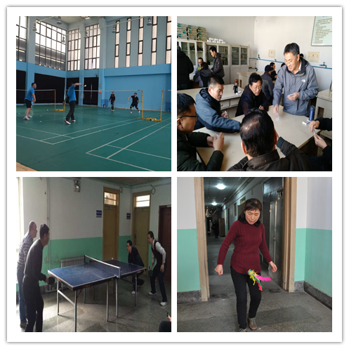 跳绳和踢毽子计时一分钟,各位老师都使出浑身解数,有几位女老师明显擅长于跳绳,抡起来飞快,反着跳也不在话下。青岛的三月也依旧是北风盛行,考虑到这一点,踢毽子比赛的地点改到了教学楼大厅里。几位老师很早就跃跃欲试,计时开始,各位老师赶忙抛起键子,大部分老师是靠鞋子内侧,也有的老师技术特别,用鞋外侧靠近后脚跟的地方踢,实在够不到只能绷起脚尖,做个大踏步。几轮运动下来,有几位年纪稍长的老师气息微喘,笑一声老,抹两把汗,酣畅淋漓。“双龙戏珠”是两人背靠背夹住一个气球运到远处的椅子上,再把气球做爆,返回。配合的老师竭尽全力向目标靠近,可是往往你牵我拽,走不了直线,好不容易到了椅子边上,一转身没抓住气球,就瞬间就被风抢走了,无奈只得再来一次。大家状态百出,笑声不断。扑克够级就更讲究团队合作和判断能力,要有牺牲精神。或送“科”或抓“落”,有人得心应手,有人懵懵懂懂。但不论比赛输赢,够级比赛都提现出了一种全局观念,整体意识。羽毛球和乒乓球赛场上运动员们挥汗如雨,积极拼搏,展现出了自动化人饱满的精神风貌及凝心聚力的团队精神。比赛为广大老师提供了一个切磋球技、展示自己的机会,增进了老师间的友谊,促进了各教研室实验室间的沟通和交流,增强了学院凝聚力和向心力,取得了预期的效果。
