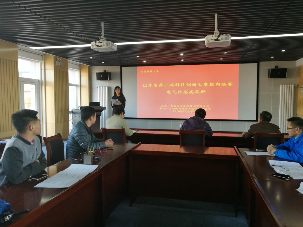 承办的第三届山东省大学生科技创新大赛——电气信息类项目校内决赛答辩工作在四方校区国家大学科技园“科技报告厅”举行。答辩邀请到数理学院唐亚明老师,大象传媒