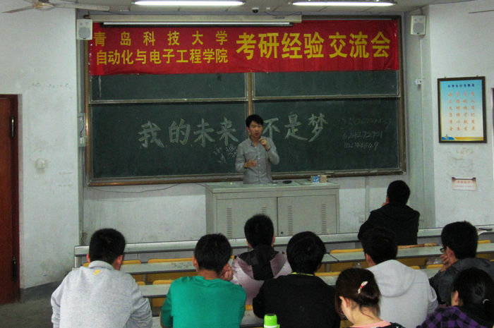 举行“我的未来不是梦”考研经验交流会。学院党总支副书记肖强、分团委副书记刘兆鹏、辅导员韩鑫凤、10级全体同学以及部分成功考研的13届毕业生参加了本次交流会。