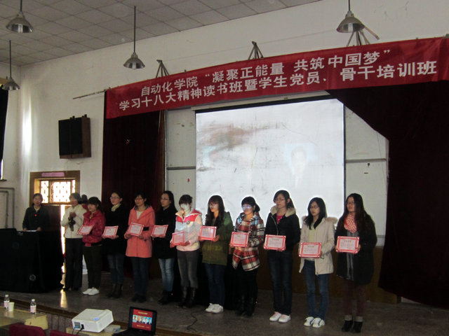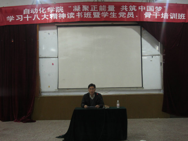 培训班上,曲慧敏首先为荣获学院第一届“十佳团支书”荣誉称号的团支书进行了颁奖,随后作了题为《文化自觉与中国梦》的报告。曲慧敏以深厚的理论功底、严密的逻辑体系、详实的背景知识,从中国梦的概念内涵、理论基础、实现途径等角度,对党的十八大精神进行了全面、系统的解读。肖强从提高思想认识、培养品牌意识、提升综合素质、树立良好形象等四个方面对学生党员、骨干提出了具体要求和殷切期望;科大校友葛茂旭结合自身经历,分享了创业历程和成功经验;校放飞梦想志愿服务队代表就如何组织大学生进行志愿服务作了具体辅导。