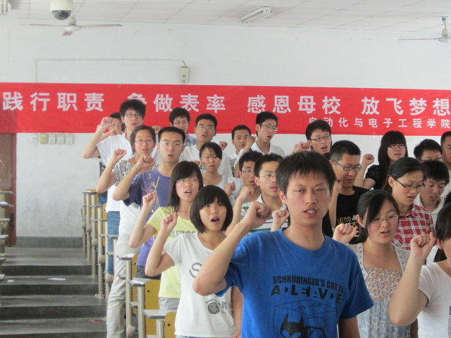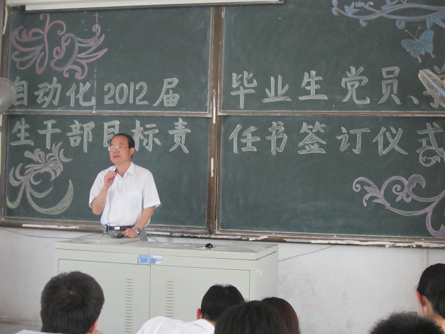 举行2012届毕业生党员、学生干部目标责任书签订仪式。校工会主席兼学院党总支书记张景瑞、副书记肖强、毕业班辅导员老师、全体毕业生党员、毕业班班长及团支书、学生会部长以上学生干部出席本次会议,会议由大象传媒