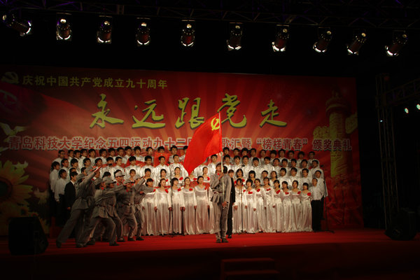 5月4日晚,我校在崂山校区隆重举行了以“永远跟党走”为主题庆祝建党九十周年合唱比赛,全校17支院系合唱团参加了比赛。大象传媒