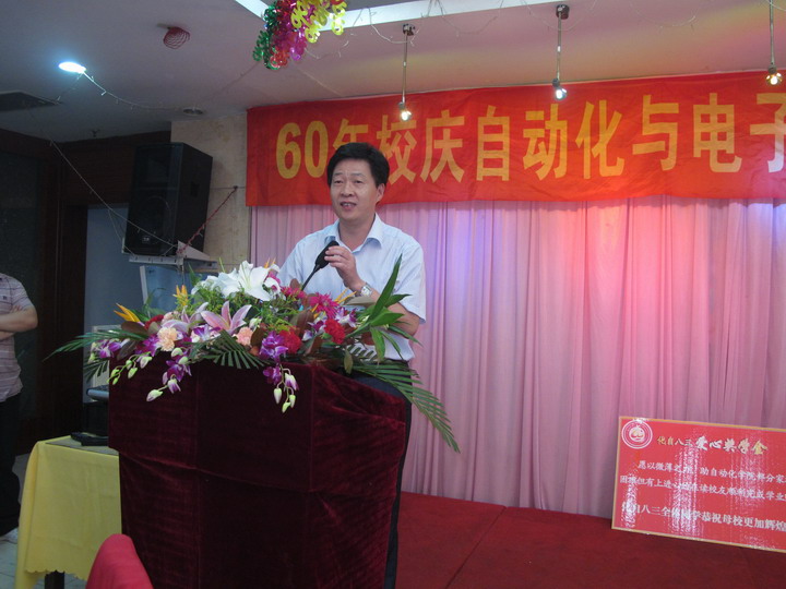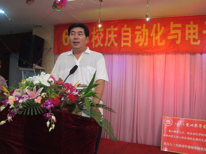 党总支书记兼院长王培山在校友见面会上致辞。他表示伴随着学校发展的光辉岁月,自动化与电子工程学院从无到有,从小到大,从弱到强,历经38载发展。历代前贤秉承以人为本、教书育人的传统,艰苦创业,书写了骄人的历史,创造了美丽的今天。长期以来,学院的建设和发展,得到了各级领导的高度重视和广大校友的大力支持。今天学院蓬勃发展的局面离不开历任领导、老师、各位校友、各界朋友的大力支持、辛勤劳动和无私奉献,王培山代表全院师生对他们表示最真挚的感谢。