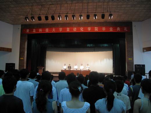 自动化054班马铁军同学代表2009届毕业生向母校表达了发自内心的深情谢意。在未来的工作、学习和生活中,广大毕业生一定谨记学校领导和老师的谆谆教诲,去谱写人生的辉煌,展现青科大学子的风采!衷心祝愿母校再创辉煌,蒸蒸日上!