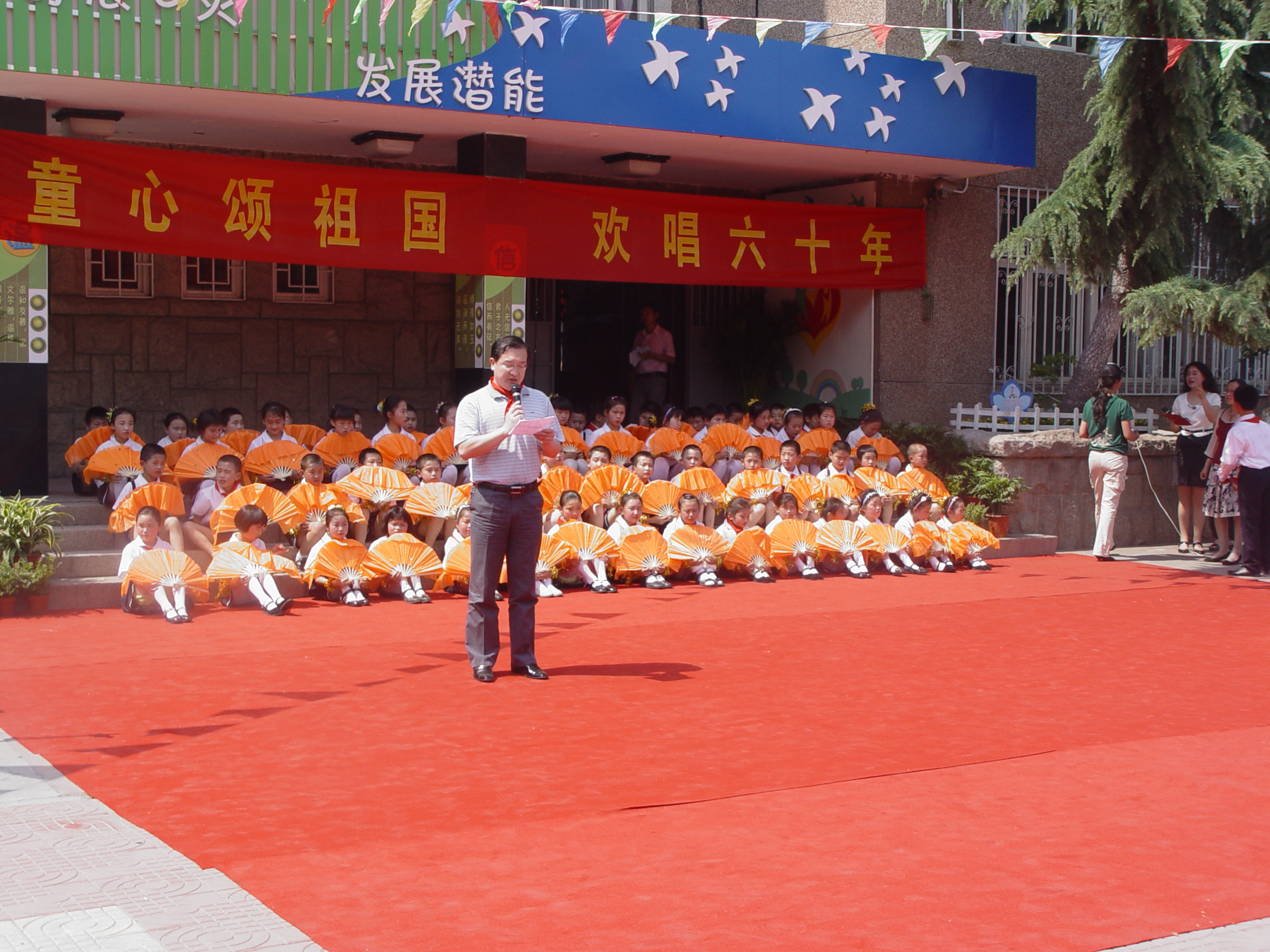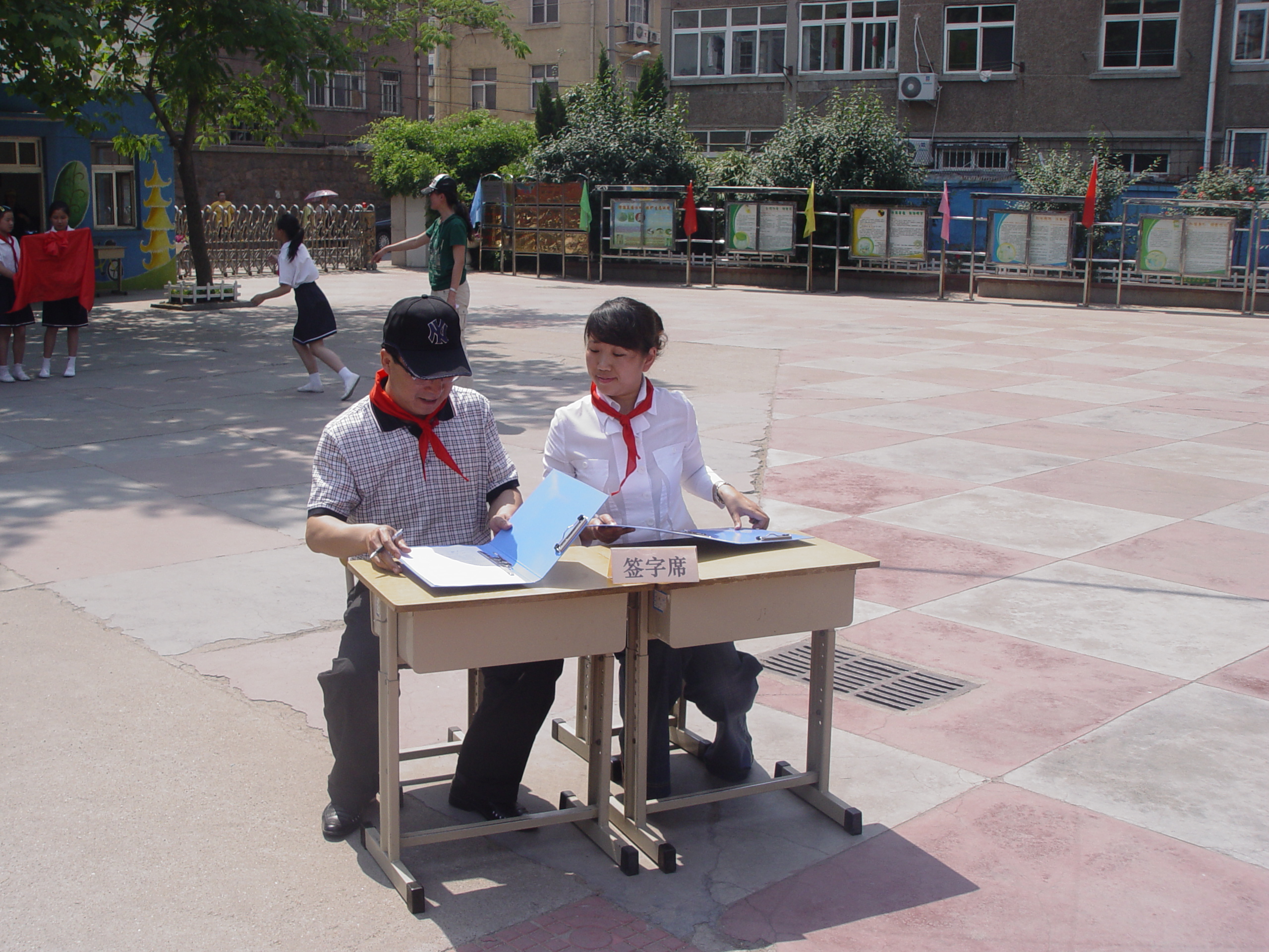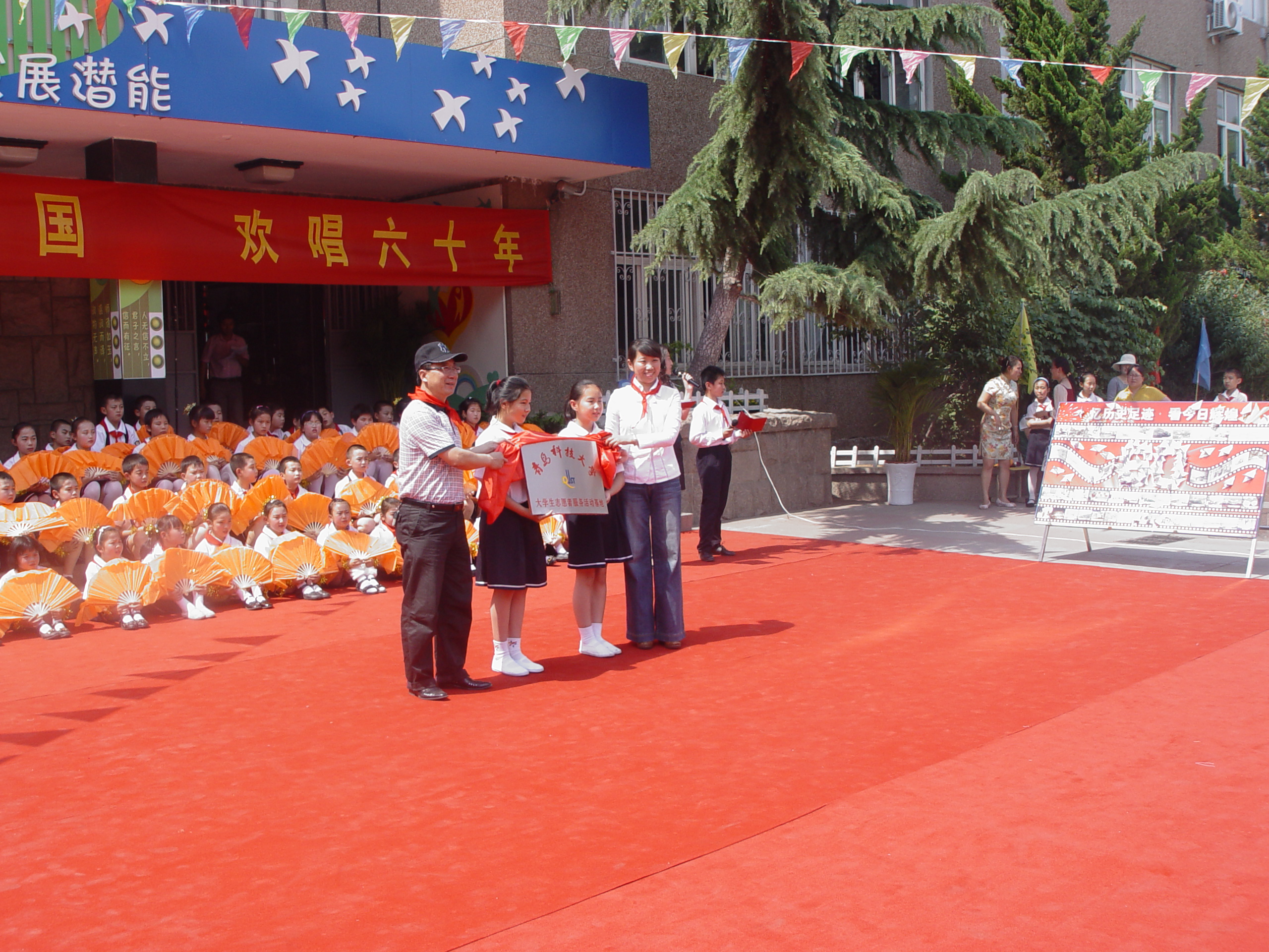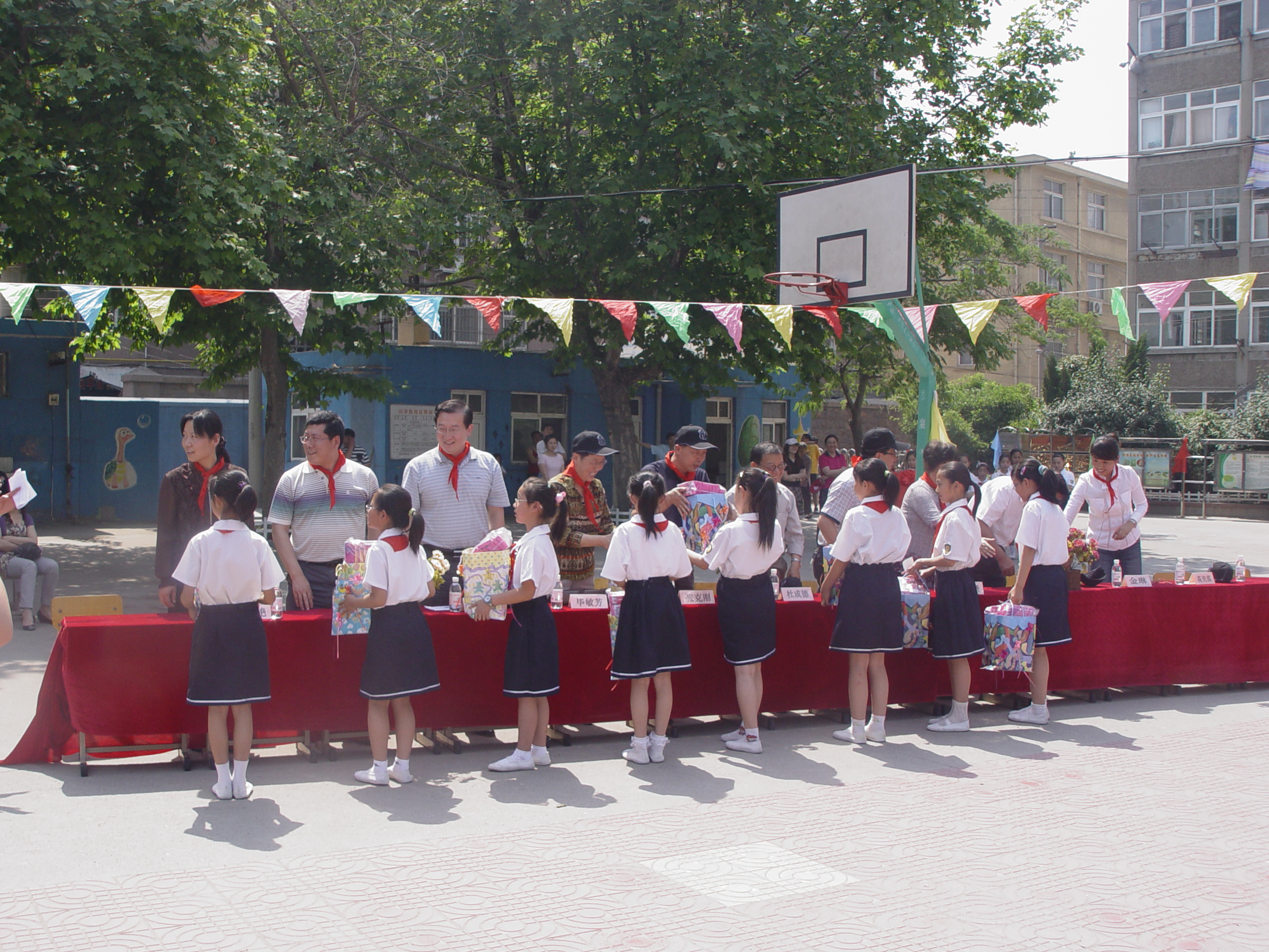 仪式按时举行,院领导受到小学生们热烈的的欢迎。院长、党总支书记王培山与洛阳路第一小学高校长签订协议,并进行揭牌。由于明天是六一儿童节,大象传媒