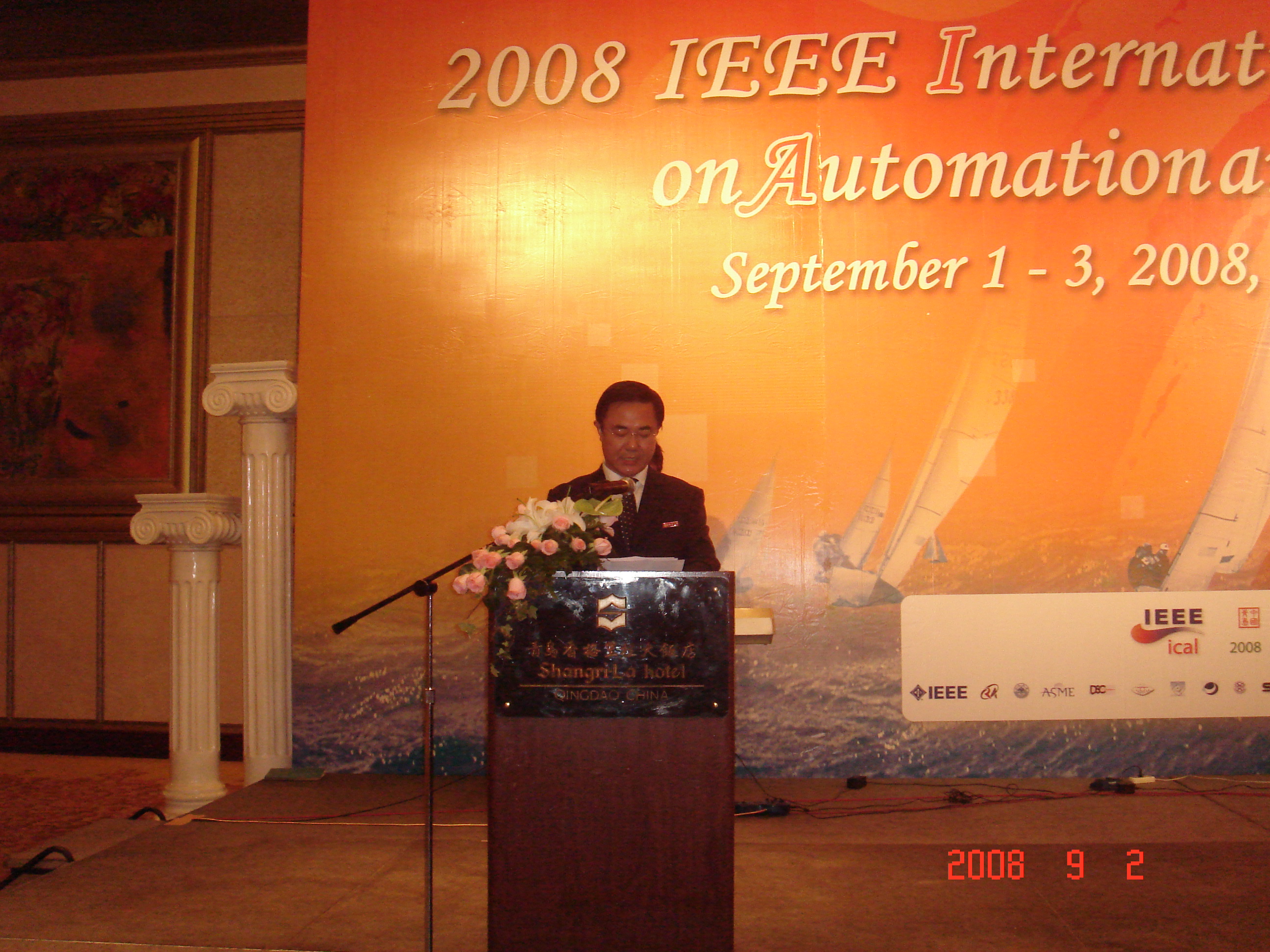 对来自国内外的专家学者表示热烈的欢迎,对2008 IEEE自动化与物流国际会议在青岛成功举办表示热烈的祝贺。他从学校的现状和学科建设等方面介绍了学校的基本情况,并诚挚邀请各位专家学者莅临我校指导工作,加强交流。