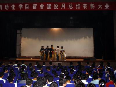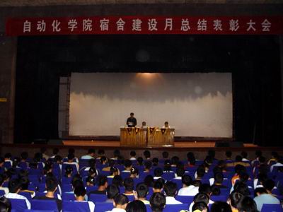 在西礼堂召开了迎评宿舍建设月表彰大会,校学团系统迎评宿舍建设组组长、学生处副处长吴向东,学院党总支副书记陈洪宗参加了大会,大会由院分团委书记曲斌艳主持。