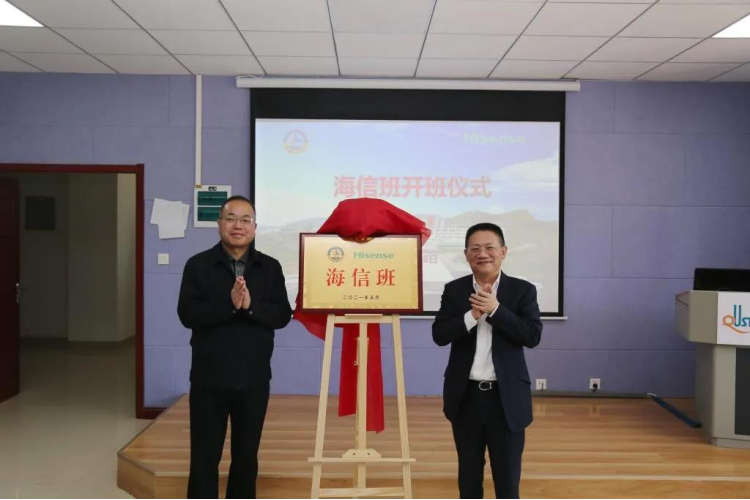首个名企班——“海信班”开班仪式在崂山校区举行。海信控股公司高级副总裁代慧忠,党委常委、副校长丁林出席仪式。