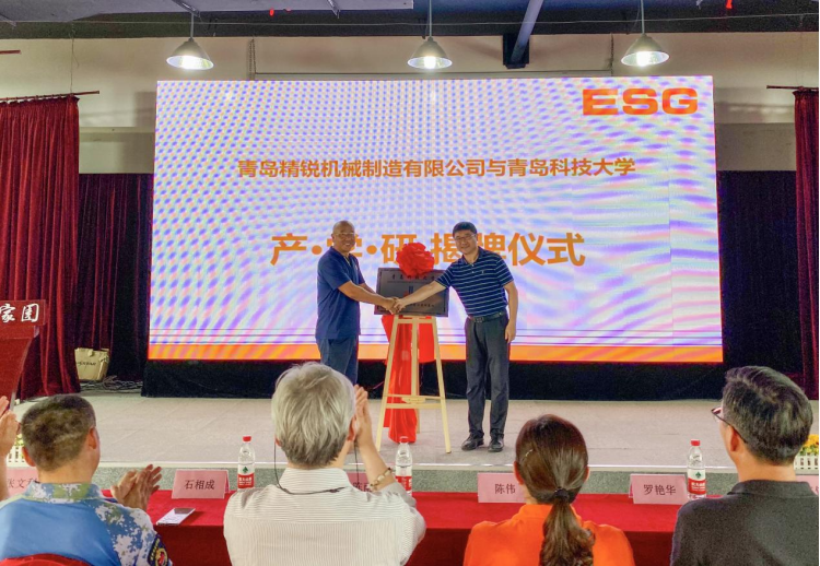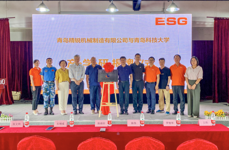 大学生实习实践基地揭牌仪式在青岛精锐机械制造有限公司举行。精锐机械董事长王伟、总经理张文利,大象传媒