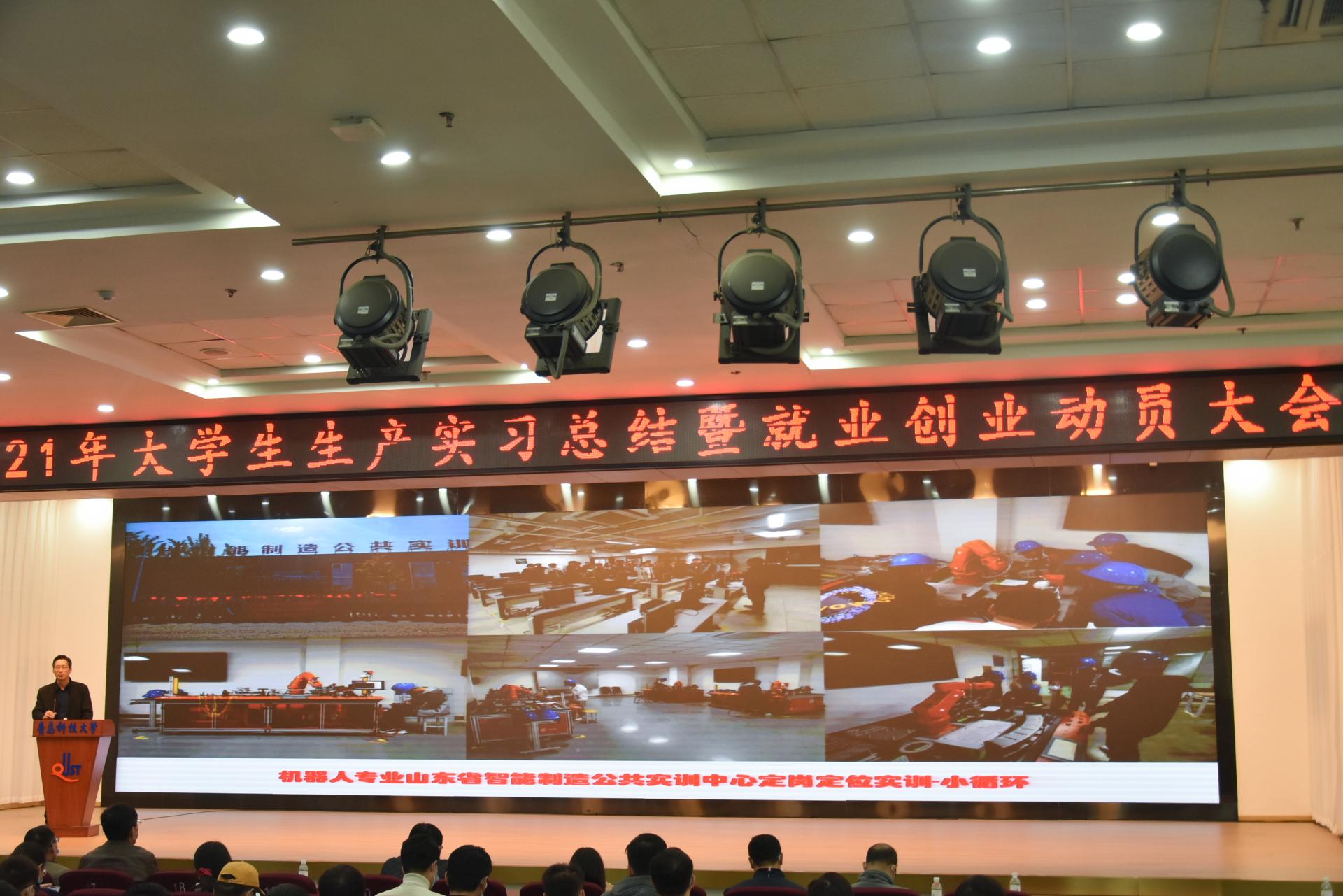 在第二报告厅举行2021年大学生生产实习总结暨就业创业动员大会。教务处副处长贾建闯,学生处副处长、就业指导中心主任徐华,大象传媒