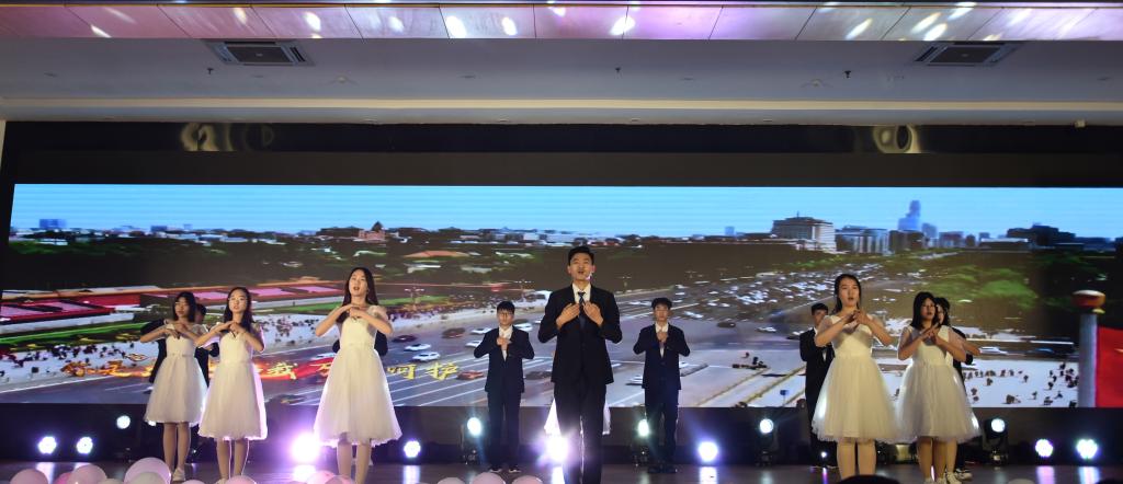 21级全体团支书和心理委员用手语操《不忘初心》向党的百年华诞献礼,多变的队形,饱满的精神,整齐划一的手语动作,向百年风雨征程中无私奉献的英雄们致敬;最后,晚会在全体团委老师和学生会主席团带来的歌曲串烧《最初的梦想》、《真心英雄》、《相亲相爱》中落下帷幕,大家用歌声唱出最初美好梦想,唱亮少年英雄青春斗志,唱响最真挚的爱党爱国、爱校荣校情怀。