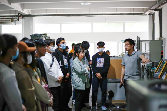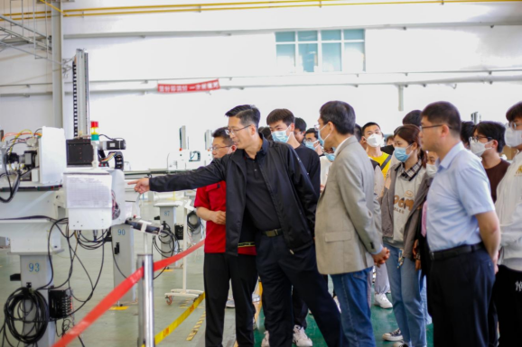 在青岛艾普智能仪器有限公司,副总经理刘亚林、尚进和校友余超带领师生参观了企业办公场所和生产一线,并向师生介绍了行业发展情况。
