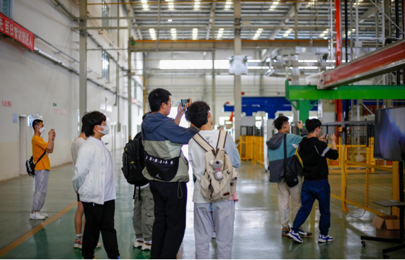 在科捷智能科技股份有限公司,吕德谦一行与公司副总经理薛力源、人力资源总监郭增水、科技项目负责人张晓英等就前期合作交流意向进行座谈。双方同意在公司设立大学生创新创业实习实践基地,吕德谦向薛力源授牌。在郭增水、张晓英陪同下,学院师生参观了公司展厅和生产车间。薛力源为师生介绍了企业现状和未来发展规划,结合自身经历就如何适应企业、跟上企业发展的需求为同学们上了一堂职业生涯课。吕德谦从职业生涯规划出发提出建议,他表示此次交流学习帮助学院学生走进企业,触摸就业,广大同学应树立正确择业观、就业观,认清形势,明确目标方向,在实习实践中注重磨炼,为今后自己能更好地就业打下基础。在场同学积极与公司负责人探讨交流,提出困惑,表达想法。