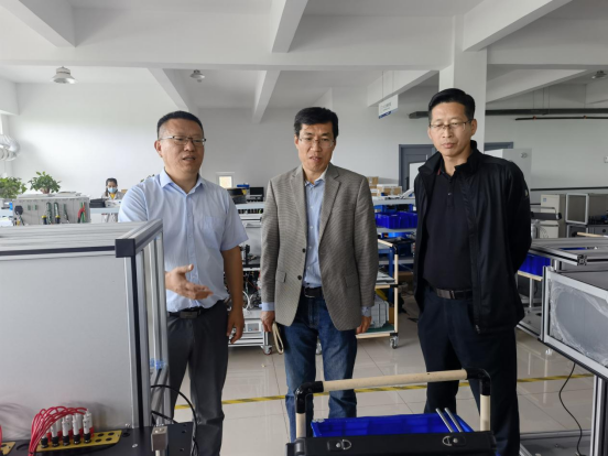在青岛科捷机器人有限公司,吕德谦一行在事业部经理郑岩陪同下实地参观公司生产线,听取了公司发展历程和发展目标。