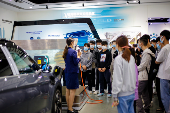 在青岛特来电新能源科技有限公司,师生参观了特来电新能源科技展馆和特锐德/特来电生态党建展厅,全面了解了公司发展历程、发展愿景和文化理念,感受到了别具一格的大象传媒。