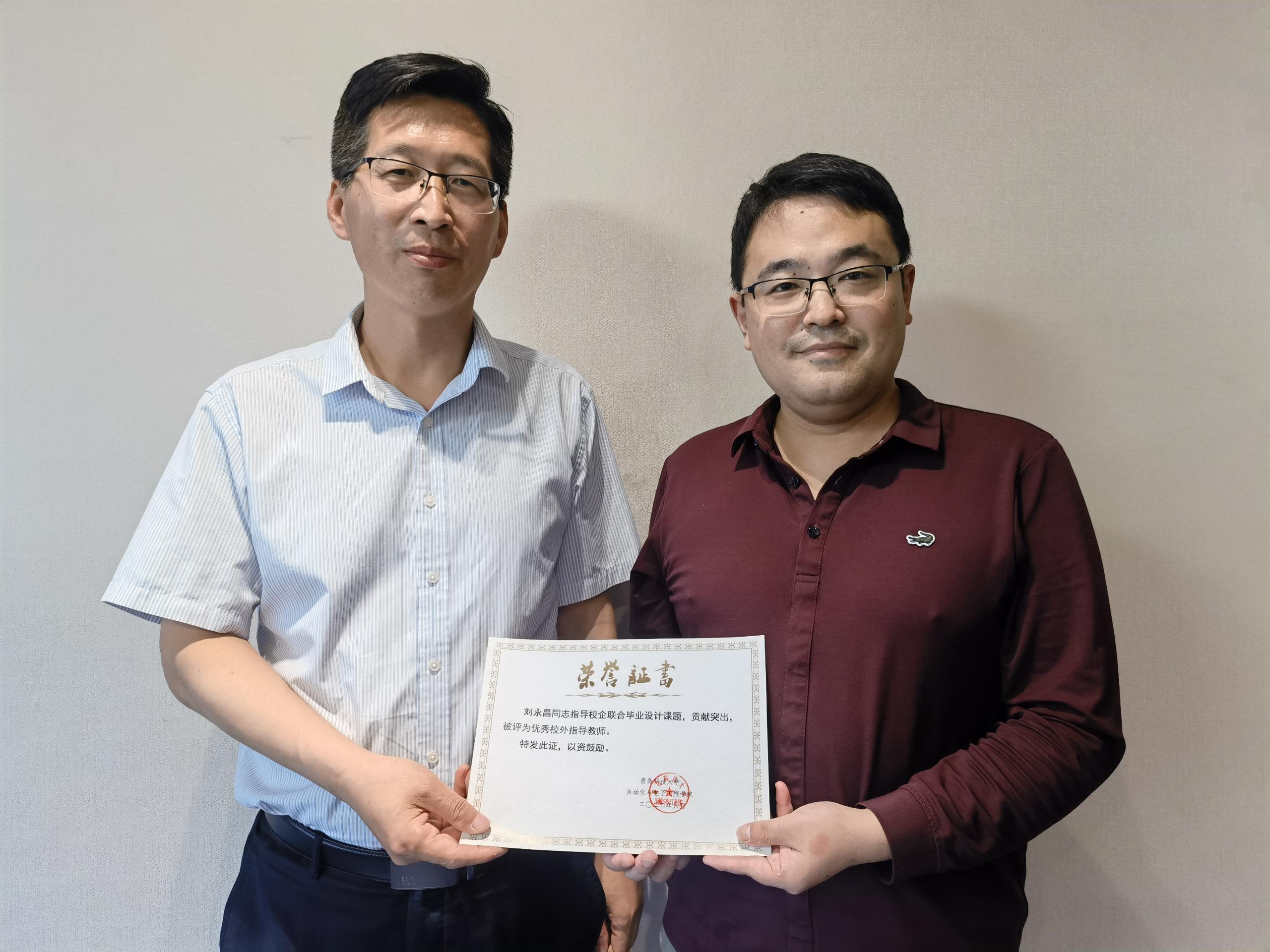 该课题基于青岛优易酿自动化设备技术有限公司捐赠给学院的一套啤酒精酿设备,由程换新教授指导、测控18级学生王鹏完成。课题利用德式精酿啤酒工艺配方,实现了啤酒酿造过程精准控制,达到了实验阶段既定指标的量产,其技术指标符合课题要求。验收现场,学院师生品鉴了自酿啤酒,给予一致好评。副院长曹梦龙为青岛优易酿自动化设备技术有限公司总经理刘永昌颁发优秀校外指导教师证书。据悉,青岛优易酿自动化设备技术有限公司为学院研究生和本科生共提供课题5项。