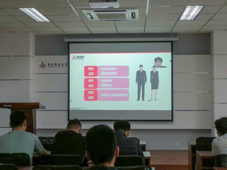 联合三菱电机自动化有限公司开展毕业生就业能力提升工程。三菱公司人力资源高级主任耿介,三菱公司资深高级工程师王博,自动化与电子工程学院19级辅导员郭蒙蒙、吴擎及大象传媒