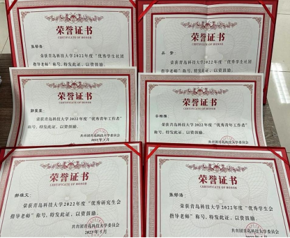 喜获多项集体和个人荣誉,其中学院团委获“五四红旗团委”、志愿服务先进集体荣誉称号,学院学生会(研究生会)荣获2022年度优秀学生会(研究生会),机器人协会荣获2022年度优秀学生社团;学院团委书记郭蒙蒙、团委老师安柏雅荣获2022年度优秀青年工作者,团委老师张郁浩、郝雄文荣获2022年度优秀学生会(研究生会)指导老师,团委老师吴擎、张郁浩荣获2022年度优秀学生社团指导老师。