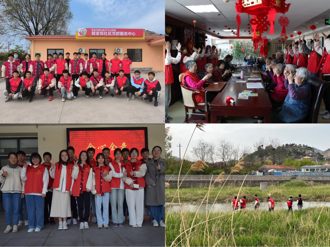 五四红旗下,青年当有为。为进一步弘扬五四精神和志愿服务精神,培养青年志愿服务意识,充分展现“自家”青年担当,学院星火义工队40余名团员青年前往青岛市福山老年公寓活动中心、崂山区沙子口戴家埠社区开展志愿活动。在福山敬老院,团员青年们与老人们老歌新唱,共学手势舞,共话隔辈情,为老年人送去温暖,将青春的气息留在欢声笑语之间。在戴家埠社区,团员青年们沿河岸徒步捡拾废弃纸巾、塑料袋等垃圾杂物,以实际行动传递志愿服务精神,构建“水清、河畅、岸绿、景美”的良好生态环境,以“自家”青年的行动担当向五四青年节献礼。