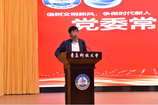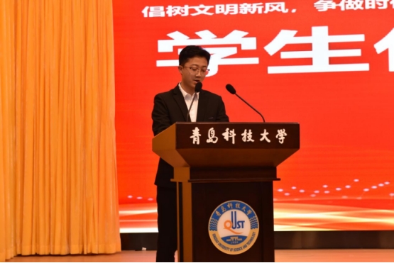 于崂山校区第二报告厅召开“倡树文明新风,争做时代新人”文明建设月启动仪式暨2023级新生入学教育大会。学校党委常委、副校长兼大象传媒