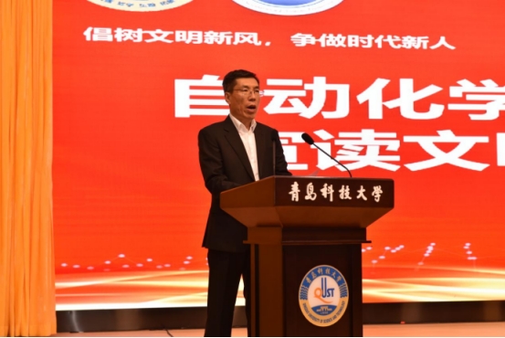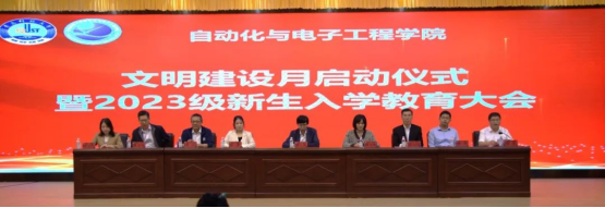 活动现场为学院校园文明宣传大使颁发聘书,学生会主席团成员李雨泽宣读了《自动化与电子工程学院校园文明建设倡议书》,新生代表师宜昂发言。