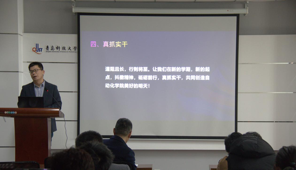 学院党委副书记兼副院长刘名森就学生教育管理相关工作进行了梳理部署,明确了毕业生就业、学生安全稳定、学风建设、学科竞赛、新闻宣传五个新学期学生工作重点。他提到,学院各部门要优化工作模式、加强交流沟通、形成反馈闭环,在推进产学研合作、访企拓岗专项行动、四困生重点帮扶、培育优良学风等方面凝聚起协同育人合力,发挥积极作用,充分激发培养新时代“自”家青年学子的内在动力。