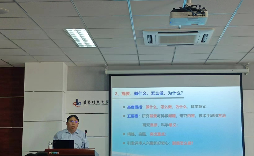 生宁简要介绍了池荣虎教授在科学研究和研究生指导等方面取得的一系列成就。池荣虎教授以学位论文撰写规范为提纲,从论文题目、摘要、关键词、正文、结论、实验、参考文献等方面给大家做了详细的讲解。他肯定了研究生在知识创新领域的主体地位,强调了学位论文是毕业生综合知识和专业能力的检验,能充分反映学生的知识掌握程度、提出问题、解决问题和归纳总结能力。池教授以生动鲜活的案例和深入浅出的讲解,为研究生们详细讲述了学位论文撰写的重要性和技巧,并指出一篇优秀的学位论文不仅需要扎实的理论基础和深入的研究分析,还需要清晰的逻辑结构和流畅的语言表达。池教授分享了自己在学术研究和论文写作中的心得体会,鼓励研究生勇于探索、敢于创新,不断提升自己的学术素养和研究能力。