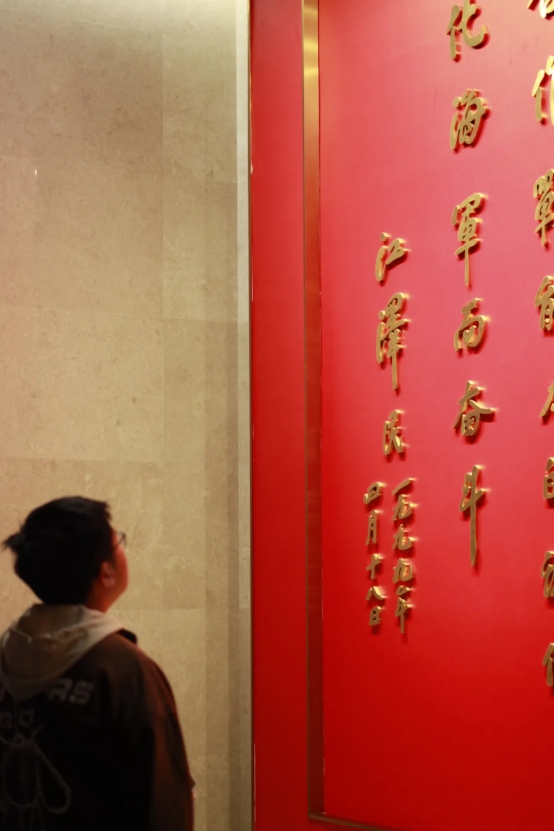 在海军博物馆,同学们参观了室内、海上和陆上三大展区,在室内展区设置的“人民海军历史基本陈列”,紧紧围绕“向海图强”鲜明主题,分为“艰苦创业、扬帆启航”、“改革开放、乘风破浪”、“强国强军、挺进深蓝”三个部分。展品有解放江山岛战旗、从战斗英雄麦贤得头部取出的弹片、南海海上阅兵场景、海军历代功勋舰机装备实物、印刻数千海军革命先烈名字的英烈厅等等。大家纷纷表示,通过此次活动,他们全方位、全过程、全景式感受了人民海军在中国共产党的坚强领导下一路劈波斩浪,取得举世瞩目伟大成就的创业史、奋斗史和发展史,他们将来也要努力提升自己的能力,将来回馈社会,报效祖国,为实现中华民族伟大复兴的中国梦贡献力量!