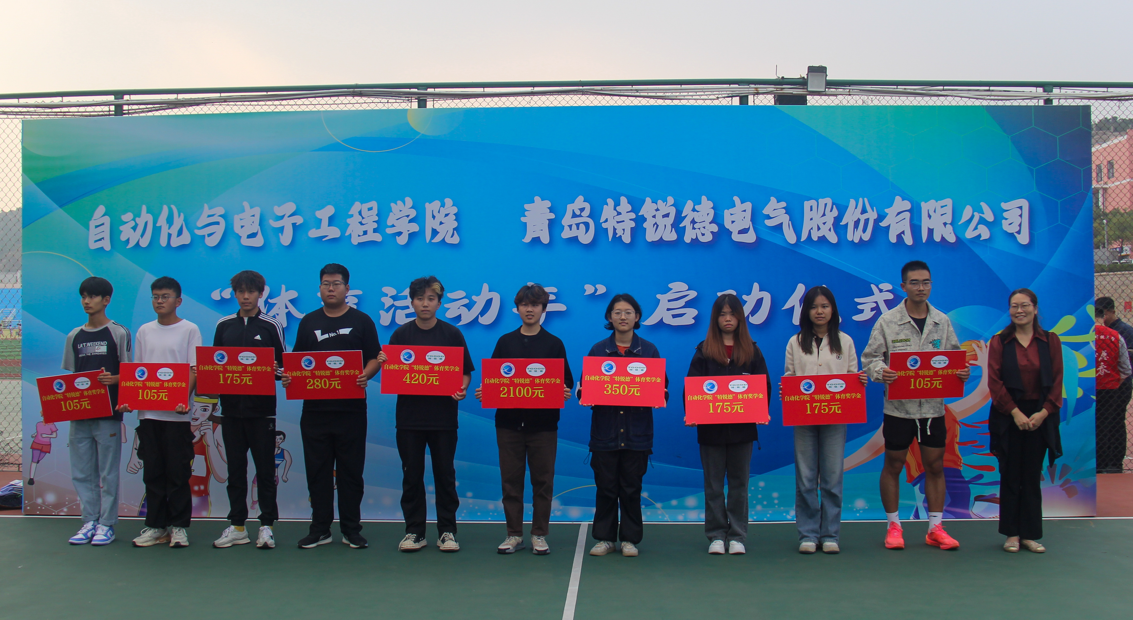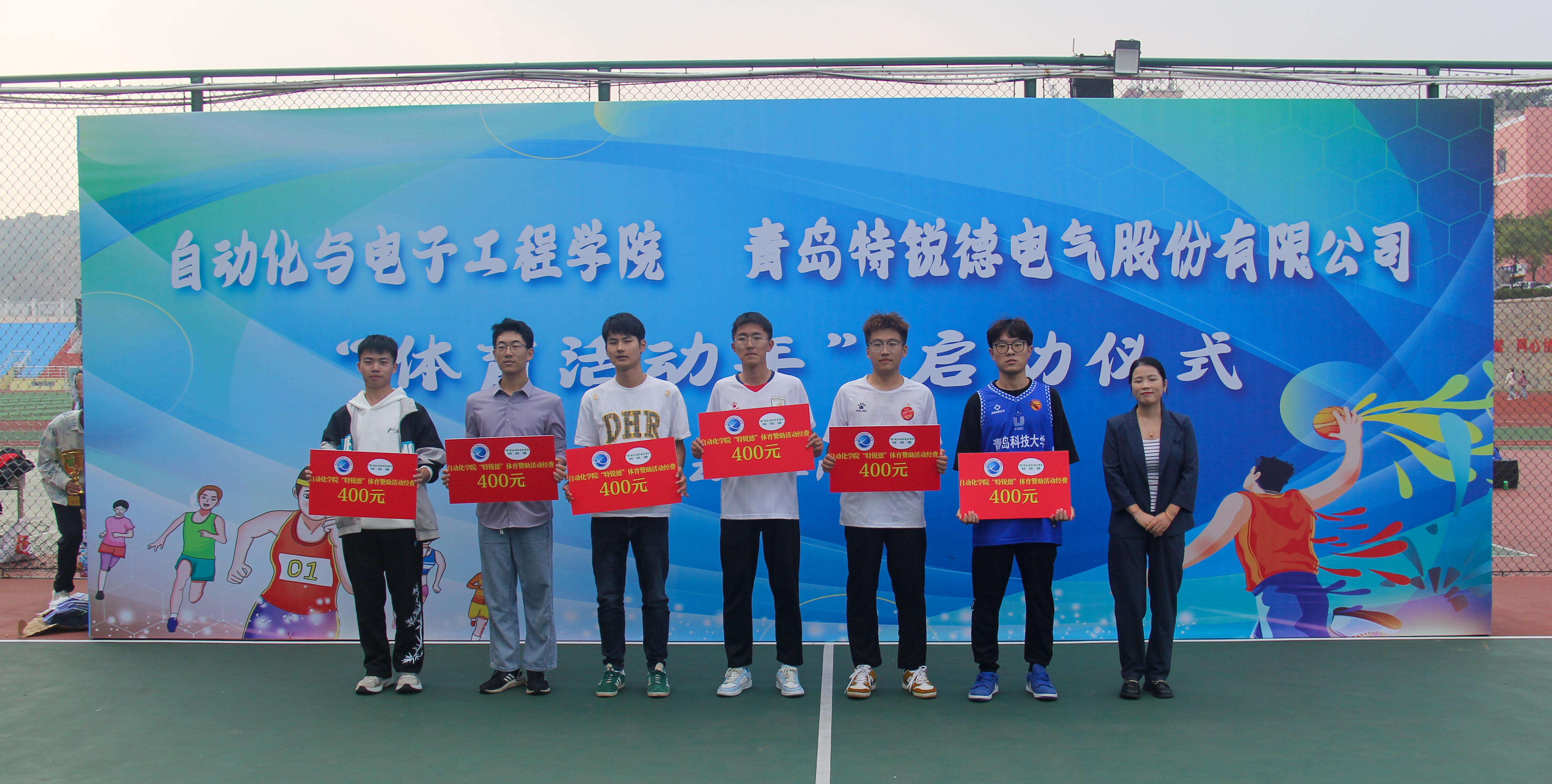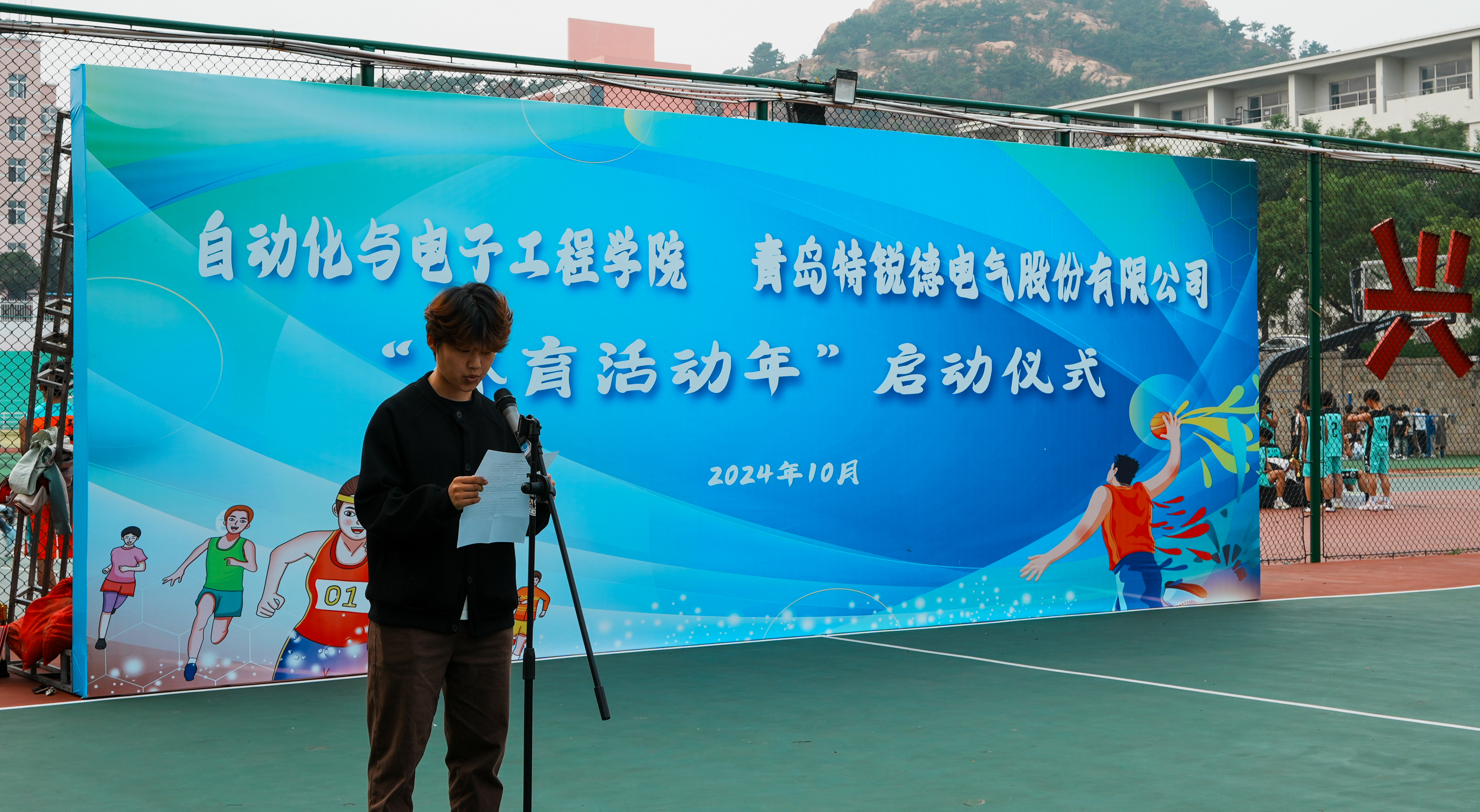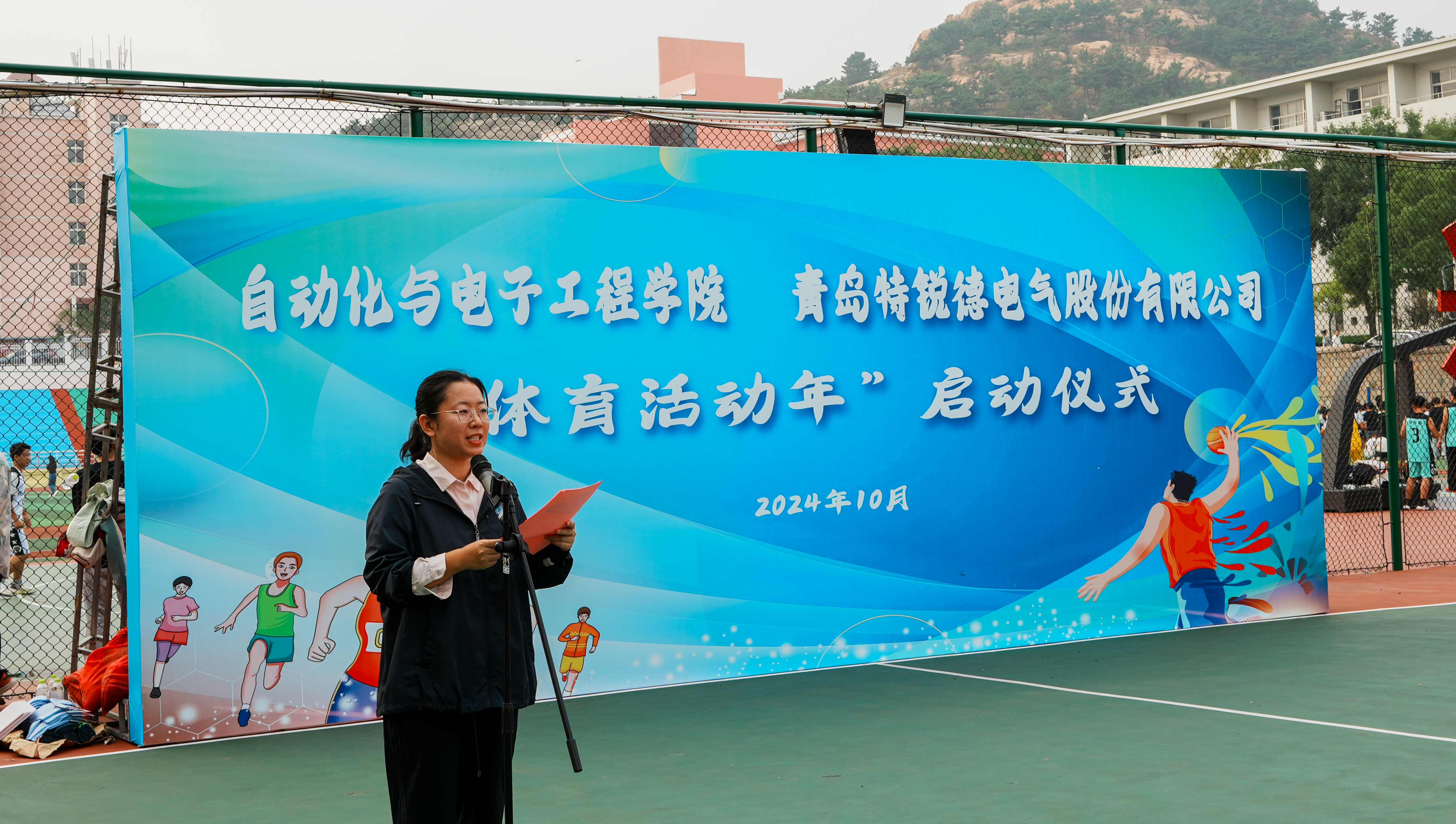 为进一步增强学生体质,弘扬体育精神,促进校企合作在体育领域的深度融合,10月15日下午,自动化与电子工程学院与青岛特锐德电气股份有限公司联合举办的“大学生体育活动年”启动仪式于南苑篮球场举行。青岛特锐德电气股份有限公司人力资源中心人力总经理助理张莹,学院党委书记李卉,学校教务处专职教学督导员楚晓东、学生处副处长李春家、团委副书记李浩,学院党委副书记兼副院长刘名森出席启动仪式。仪式由学院团委书记兼学工办主任雷静主持。