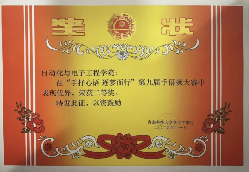 “手抒心语,逐梦而行”第九届手语操大赛在第二报告厅圆满结束。自动化与电子工程学院凭借其精心编排的《星火》节目,在众多参赛队伍中脱颖而出,荣获二等奖。