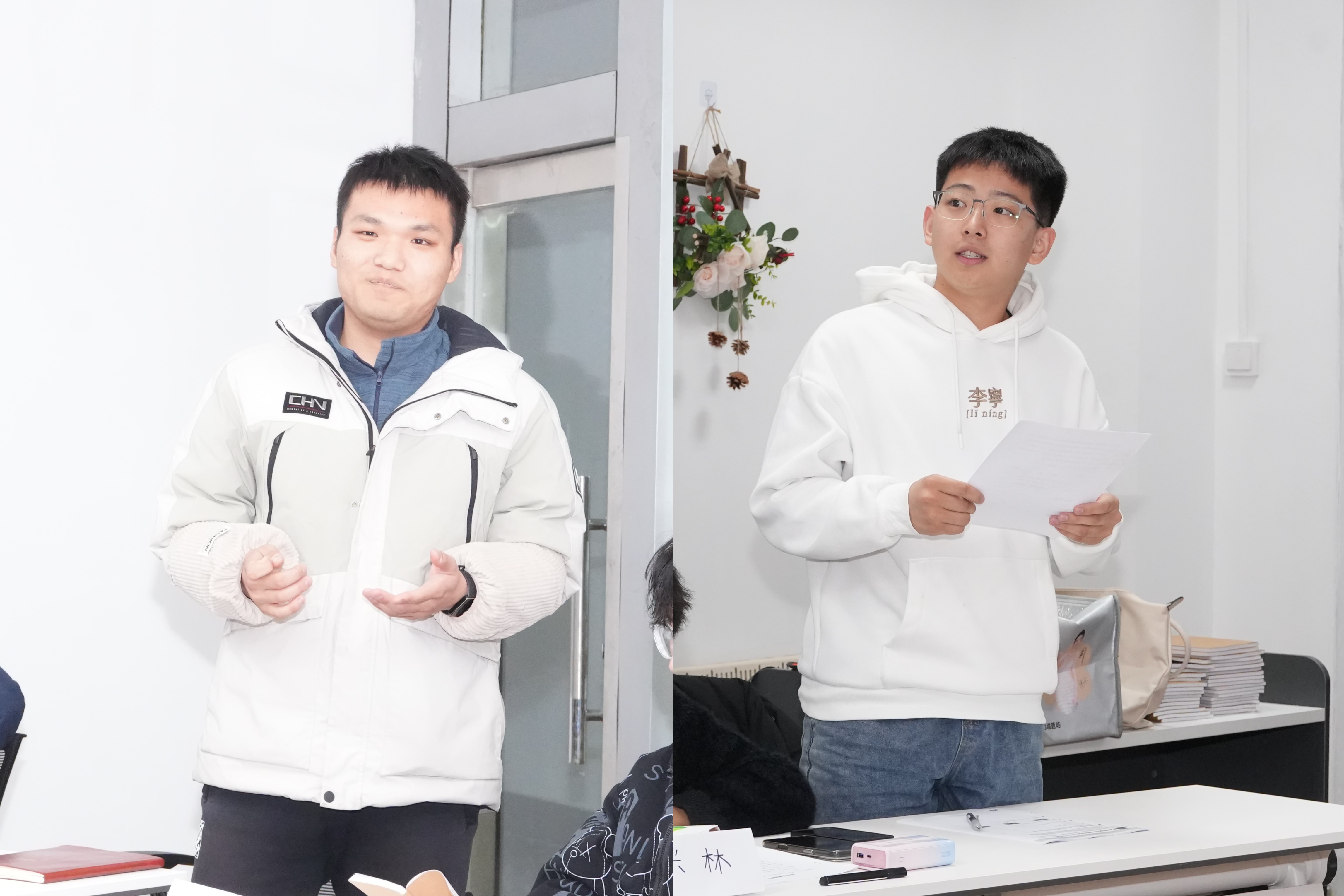 雷静以“三年后想成为怎样的自己?”“如何看待入党这一神圣抉择?”“如何切实履行班干部的职责与使命?”三个深刻而富有启发性的问题为锚,强调要审视当前的学习、工作与生活状态,鼓励其设定清晰、可实现的短期与长期目标,以更加成熟、专业、有担当的面貌迎接未来的挑战与机遇;要反思入党动机的纯洁性,理解党的宗旨与使命,坚定理想信念,提升政治素养;要发扬唯实惟先、善作善成的工作作风,锤炼领导力与责任感。张郁浩聚焦“关键少数”、“工作作风”、“业务能力”以及“实战技巧”四个层面,提出要发挥班团委“关键少数”的作用,明确责任分工,确保每一项工作都能精准定位、精准施策。同时,他要求新生骨干们务必以严谨务实的工作态度,不断强化驱动保障,力促各项工作落到实处、取得实效。李卓林对学院德育、品行分细则展开了详细解读,明确了各项工作的标准和要求,为新生骨干们提供了清晰的工作指南。丁雅琼对入学以来新生班团委开展的各项工作进行了总结点评,充分肯定了班团委取得的成绩,并指出了当前班级管理工作中存在的问题和不足,要求大家敏锐研判问题,以问题为导向,挂图作战,确保各项工作有力有序推进。