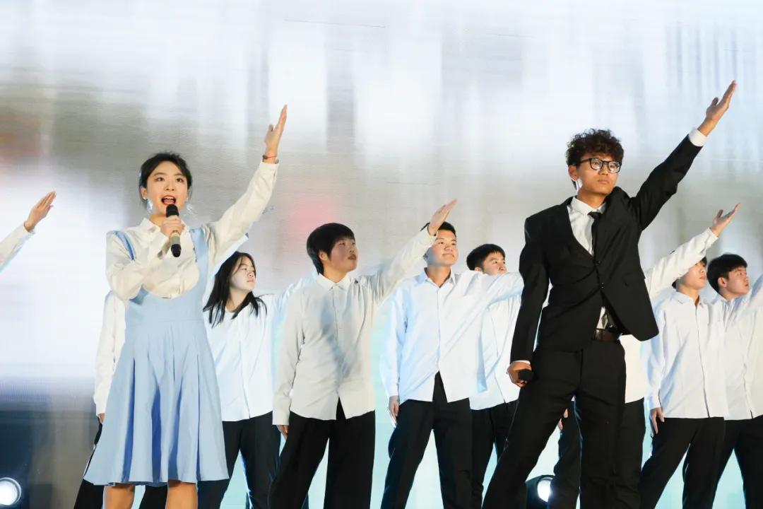 举楫间展望未来浪潮,笔尖上划出崭新可能。第三篇章在飘飘衣袂中滑进舞台,汉服加身如龙跃,风华尽显福自来,汉服走秀闪耀登场,表演者们轻抚衣袖间流转的风华,再现往日盛唐的辉煌;听,歌曲串烧节目来了,一首首歌唱出拼搏精神,唱出青春活力,唱出意气风发,也唱出激情与奉献。大古典舞《谪居》以其宁静优雅的姿态,展现了一种超越时代的美。古典舞的美,温柔始终有光;最后一个节目由团委老师带来歌曲《相亲相爱》,歌声中流露出真挚的感情,用温馨的旋律和歌词表达了对同学们的美好祝愿。迎新晚会也在这温馨的歌声中到了尾声。