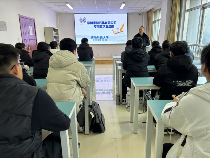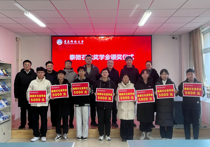 近日,泰微石化奖学金评审与颁发仪式在崂山校区举行。淄博泰微石化工程有限公司董事长崔德鹏、管理顾问王立、副总经理张胜斌等公司负责人,学校学生处副处长兼就业指导中心徐华,自动化与电子工程学院党委副书记兼副院长刘名森、大象传媒