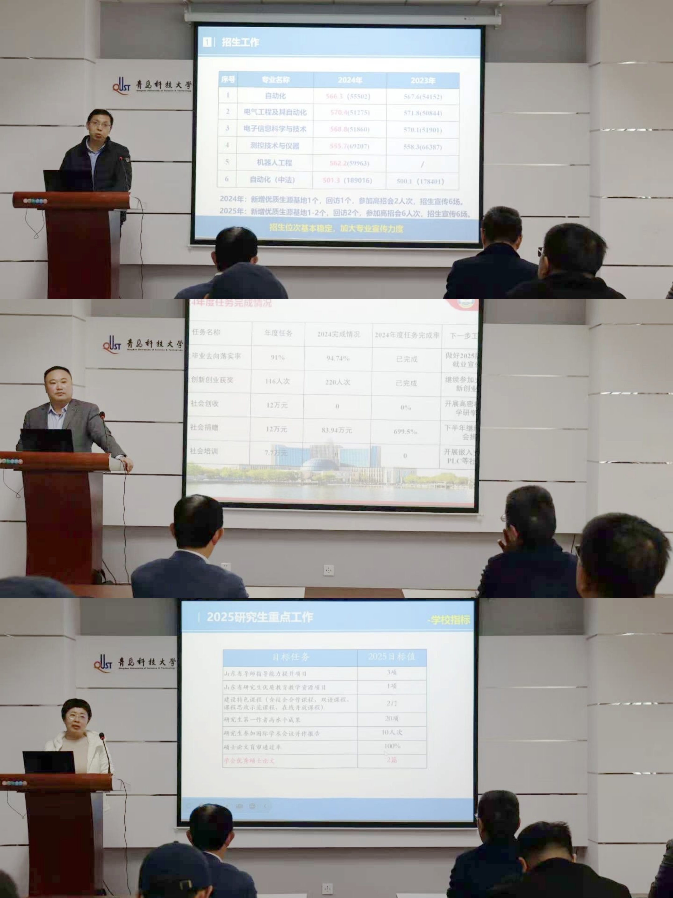 会议号召全院教职工以2025年“十四五”决胜之年为契机,深入贯彻落实学校党政工作部署,团结一致,脚踏实地,主动作为,讲好每一节课,做好每一次实验,指导好每一个学生,推动学院各项事业取得新突破。