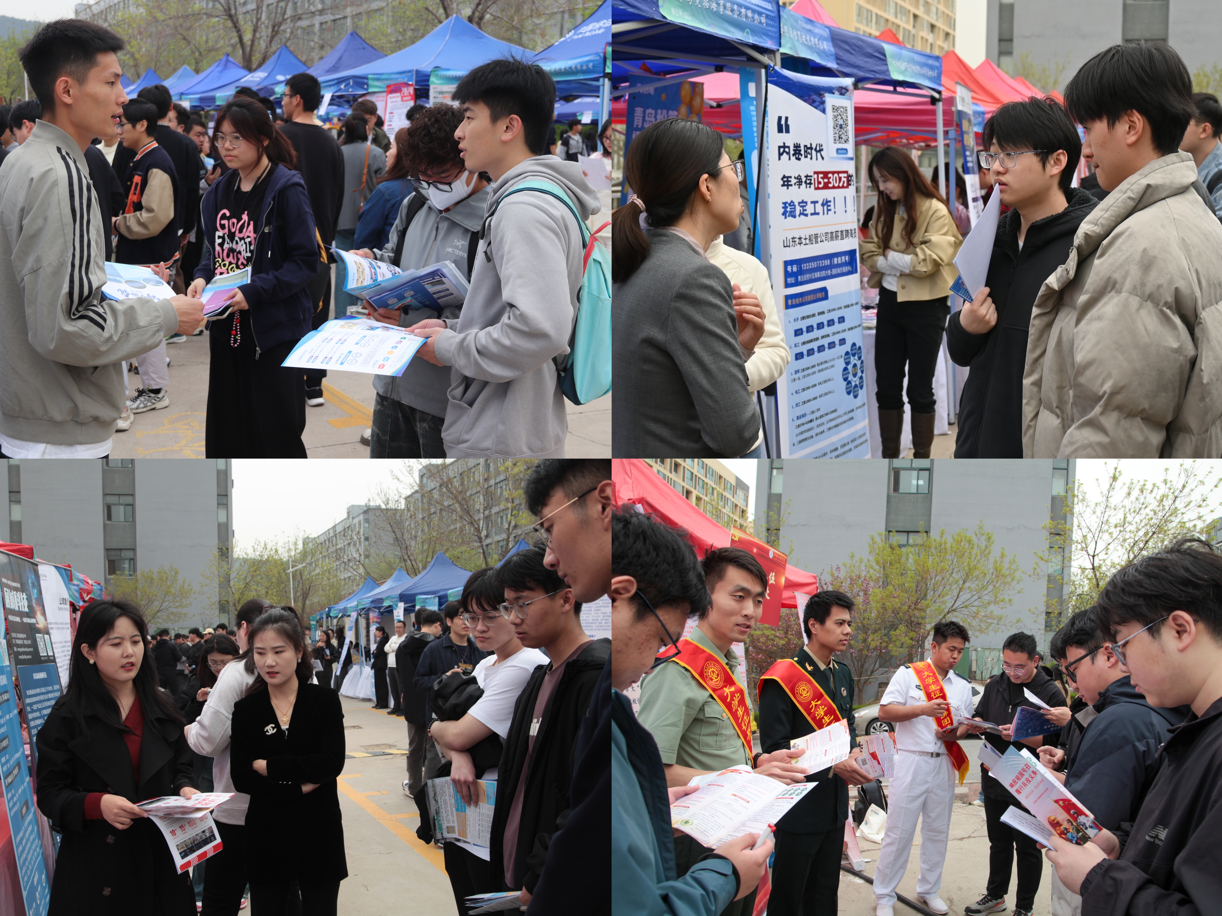 本次双选会紧扣“靶向新工科就业需求”主题,吸引百余家用人单位参会,累计投放1700余个就业岗位。参会单位涵盖国有企业、民营企业、事业单位等多种类型,其中赛轮集团、英科医疗、山东朗进科技等上市企业占比近50%。所提供的招聘岗位覆盖智能制造、机械制造、电气自动化、软件和信息技术服务、教育文化等多个行业领域,以丰富的岗位资源推动供需高效对接,为校区新工科专业背景同学提供多样化、高质量的就业、实习岗位。双选会现场气氛热烈,1500余名学生携带简历到场参会,不少企业展位前甚至“排起长龙”,学生积极与企业代表交流。