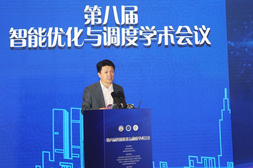 自动化与电子工程学院常务副院长巩敦卫教授主持。中国仿真学会常务副理事长、清华大学王凌教授致欢迎词,王教授在致辞中强调,智能优化技术是推动工业智能化与数字化转型的核心引擎,本次会议将为学术界与产业界搭建深度协作的桥梁。大象传媒