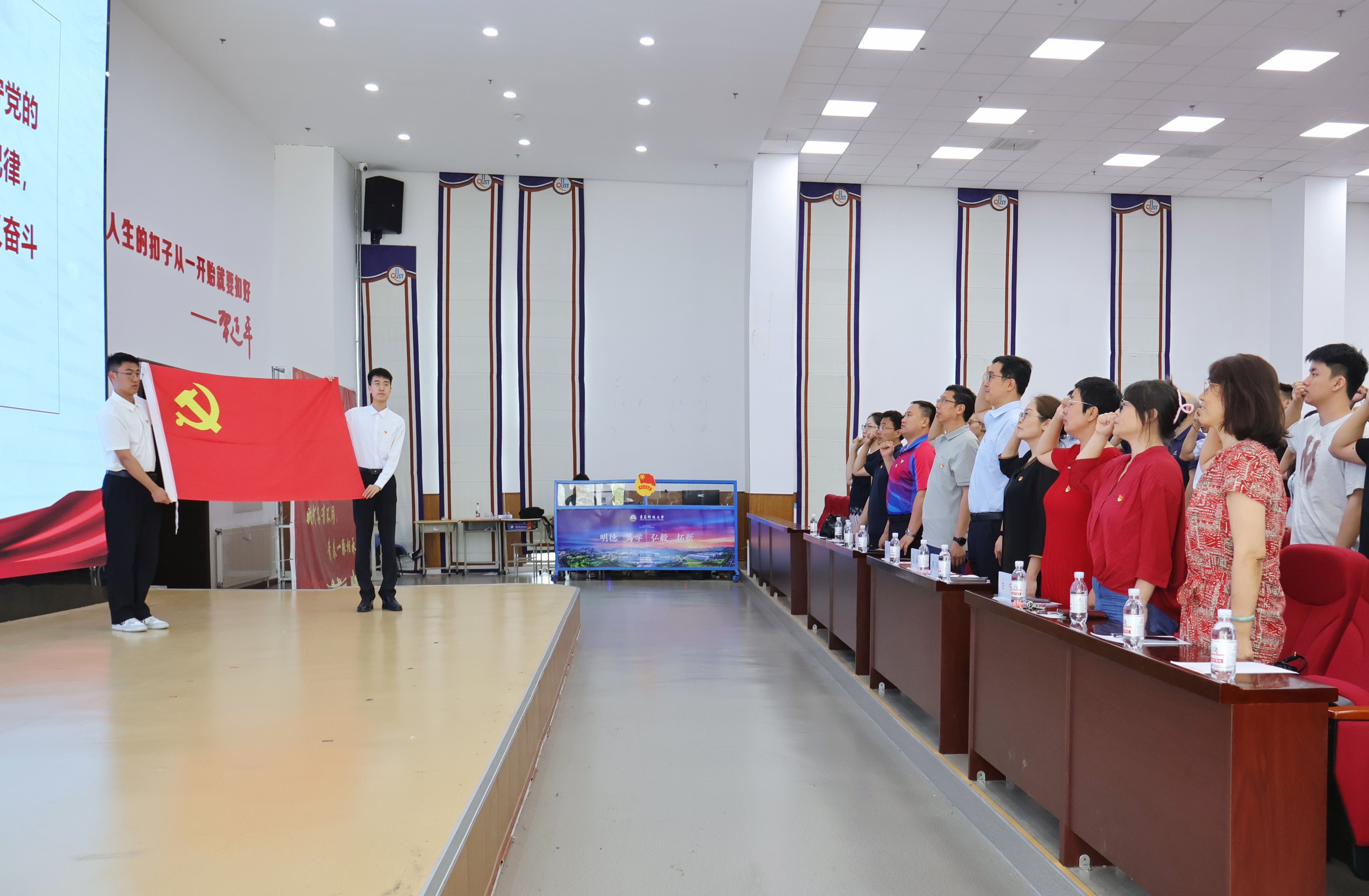 雷静带领全体与会党员重温入党誓词。铿锵誓言响彻会场,宣示了全体党员不忘初心、牢记使命,为党的事业奋斗终身的坚定信念。